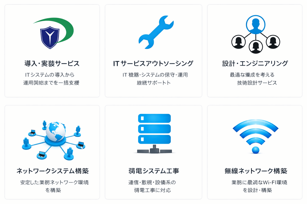 IT 関連の各種システム製品について、導入から設定、運用開始まで、ワンストップで実装支援を行います。